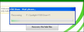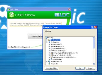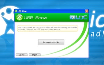 USB Show is een draagbare applicatie en vereist dus geen installatie. Door het programma uit te voeren, verschijnt er een klein venster met Spaanse tekst. Linksonder verander je de taal naar Engels. Hierna klik je op de eenzame knop in het midden om actie te ondernemen. USB Show opent een raampje, waar je de te onderzoeken schijf selecteert. De app gaat snel te werk en kondigt spoedig aan dat het herstel compleet is.